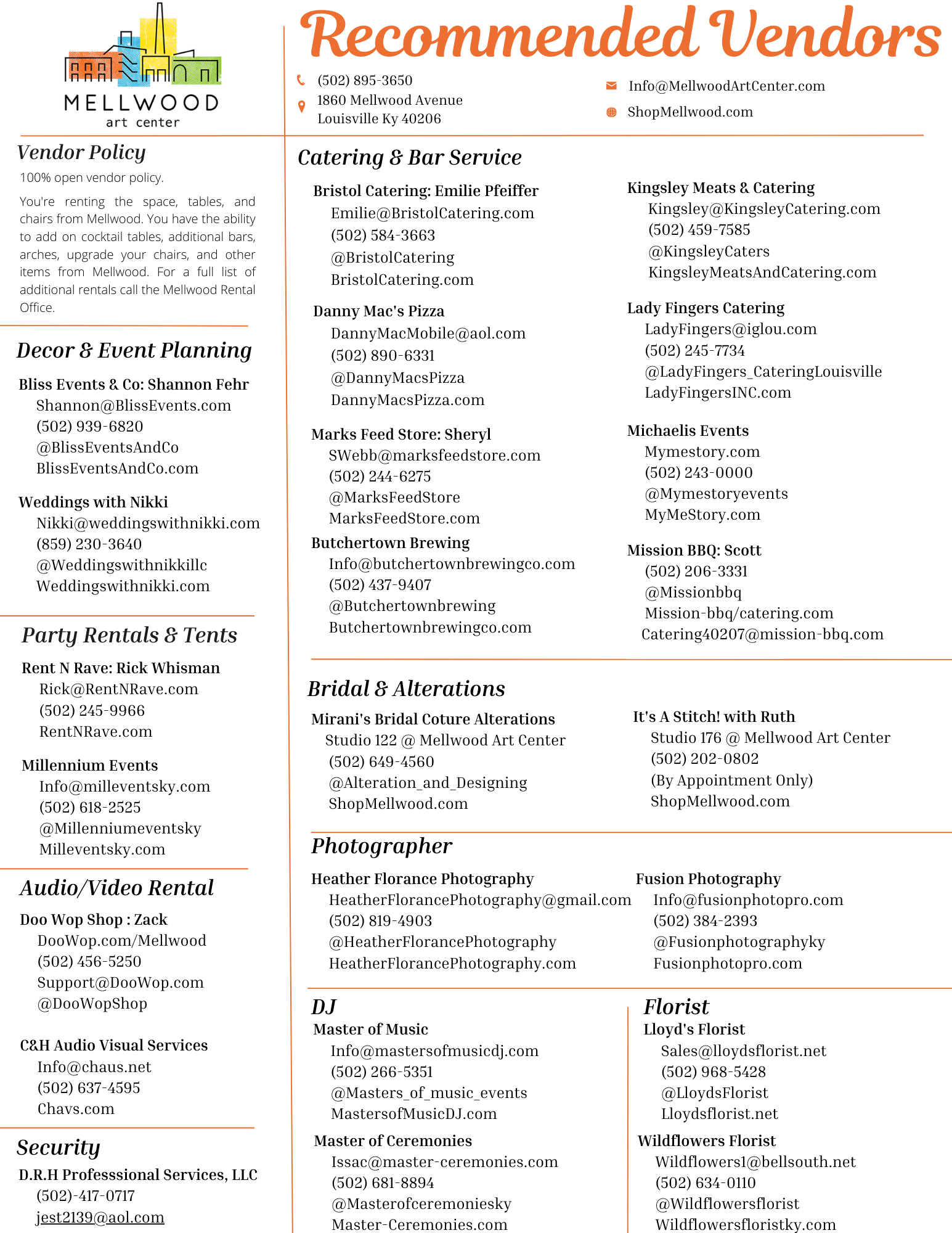 Download a PDF of our Recommended Vendor list here: